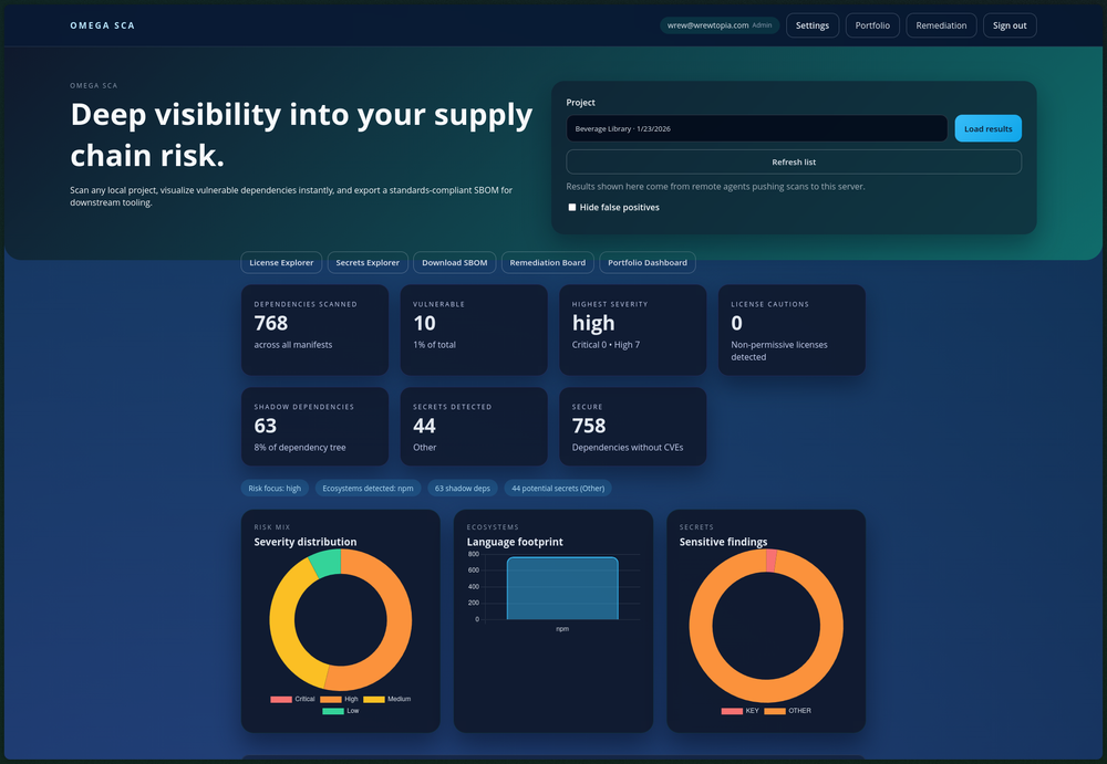 Initially it was conceived as Omega SCA, a software composition analysis tool. This was because my biggest concern at that time was vulnerabilities introduced via dependencies (both direct and transitive) - and with a large number of dependencies in some of my projects it was becoming more and more of a risk and I needed answers. Once I was sufficiently far along with SCA, though, I also determined that SAST would be the next obvious step to provide comprehensive coverage of code security for my projects. I knew with SAST I could do one of two things: Try building my own engine, or use an existing one like Semgrep or CodeQL. I've seen the results of semgrep - it's terrible - and CodeQL added more overhead than I wanted.... so I opted to try building my own engine, which is now Omega SAST.