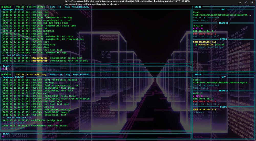 I opted to halt that project, and devise a new architecture for the bridge. Since the ESP32 couldn't keep up with the veilid network operations I opted to instead build a Rust app that interfaces with the radios over their USB serial connection, allowing the radios to do their thing natively while the app (running on a much more capable machine like an RPi or a desktop/laptop) handles the Veilid network operations. This has worked extremely well.